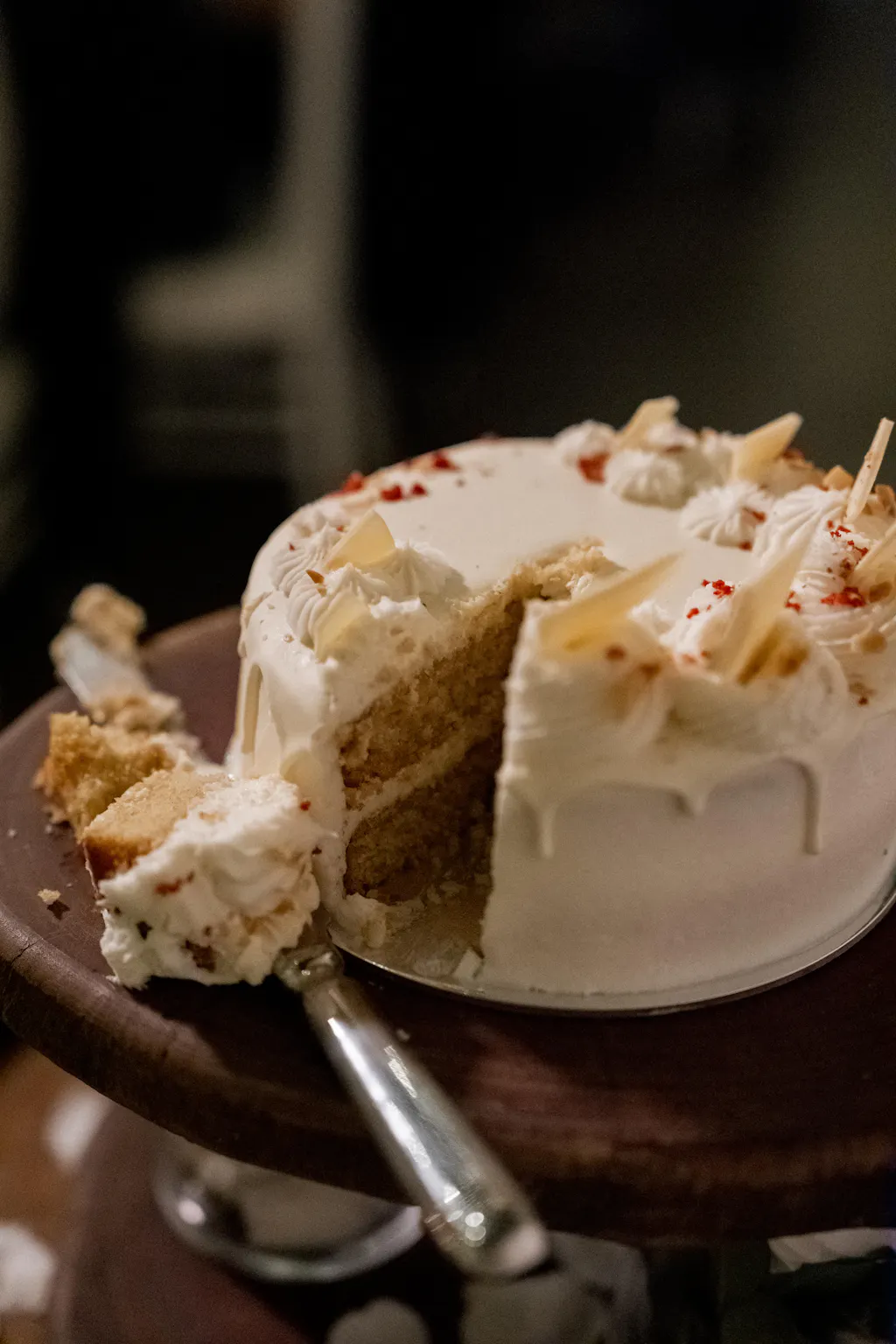 The most delicious Vanilla Cake you will try. Baked with vanilla bean and covered in either vanilla or strawberry frosting. This cake comes beautifully decorated with white chocolate drip, house-made white chocolate shards, and locally freeze-dried berries.